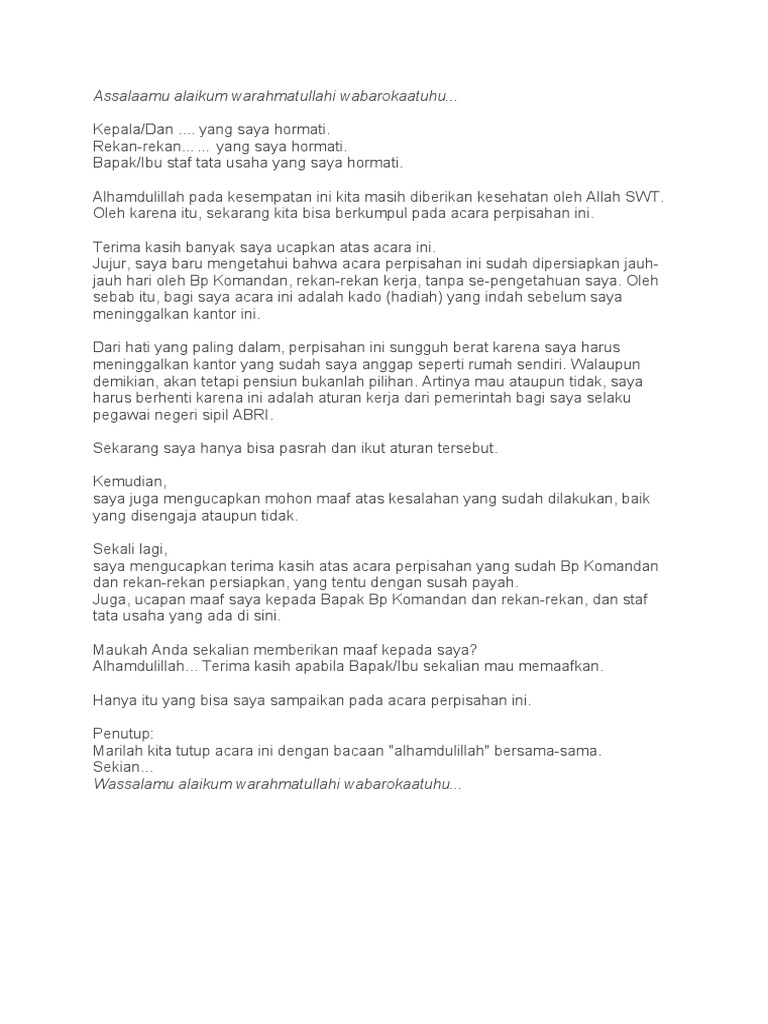 Contoh Salam Perpisahan Kerja Contoh Resource