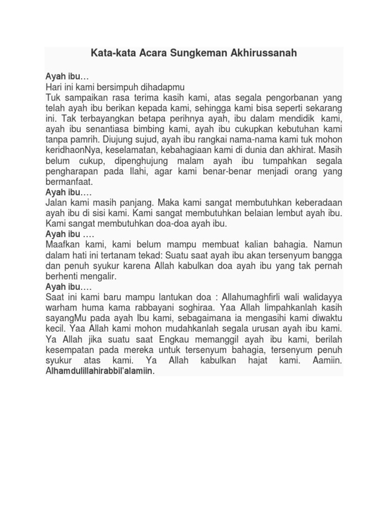 Kata-kata sungkeman bahasa sunda perpisahan sekolah. Ujang nyai kasép geulis. Ø Kami tidak acuhkan permintaan tolongmu suruhan-suruhanmu nasihat-nasihatmu. Kata-kata sungkeman Wisuda Kls VI 1.