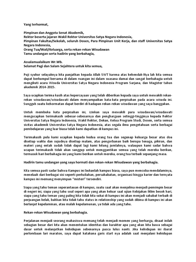 Memantau konsep sambutan wisudawan. Selanjutnya shalawat beserta salam kepada junjungan kita yakni Nabi Muhammad Saw. Adakalanya kita harus terjatuh untuk mendapat hal indah.