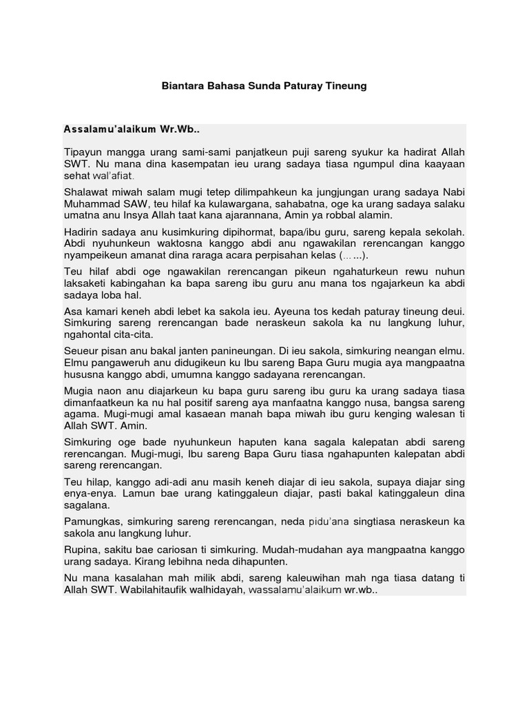 Pidato Perpisahan Bahasa Sunda. BIANTARA PATURAY TINEUNG BASA SUNDA. Pidato Perpisahan Bahasa Sunda bagian kedua.