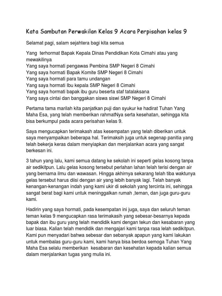 Ucapan perpisahan bisa menggunakan bahasa sehari hari supaya lebih dekat atau akrab. Zona Ilmu 7 Contoh Kata Sambutan Untuk Perpisahan. Arti Pidato Dalam Bahasa SundaDaftar Isi1 Arti Pidato Dalam Bahasa Sunda2 Bahan-bahan Pikeun Pidato.