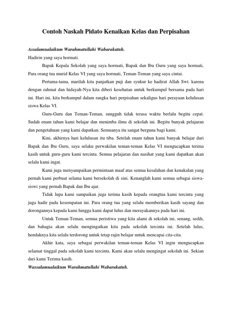 Kata kata perpisahan naik kelas. Berikut beberapa contoh naskah pidato adalah sebagai berikut. Dalam hal ini wali murid bisa orang tua ayah dan ibu saudara dan orang yang memiliki hubungan dekat dengan murid tersebut. Kata-kata perpisahan biasanya memiliki makna mendalam juga menyampaikan harapan baik bagi sahabat atau teman untuk melanjutkan kehidupannya.